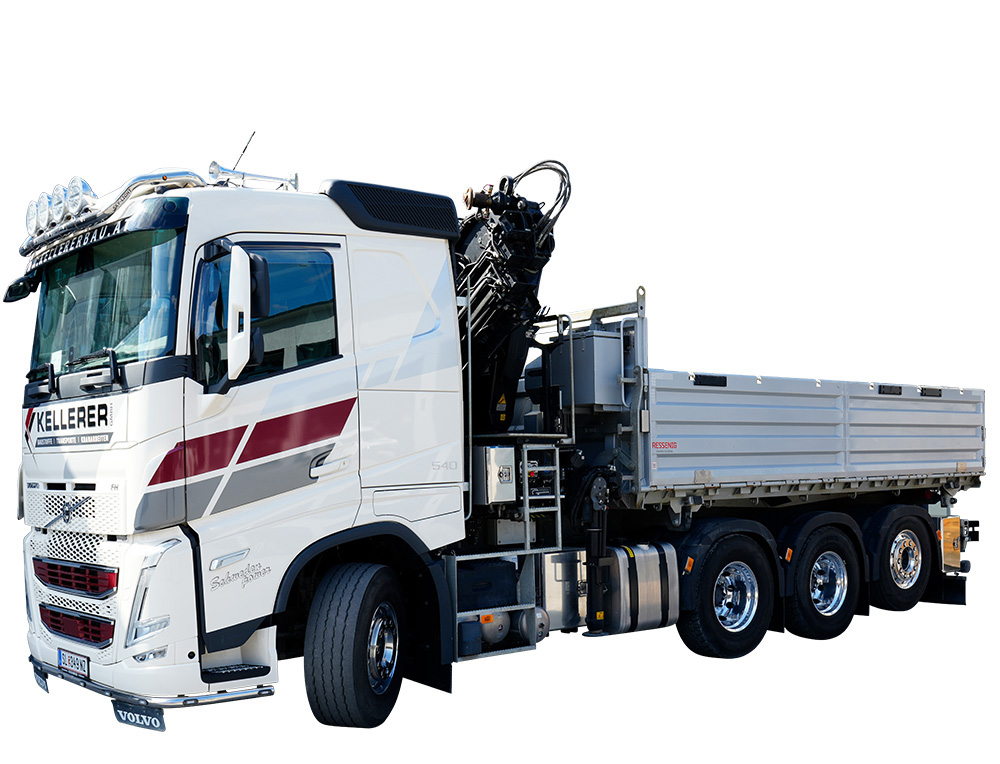 LKW 3-Achs Fahrgestell mit 3-seiten Kipper und Kran: